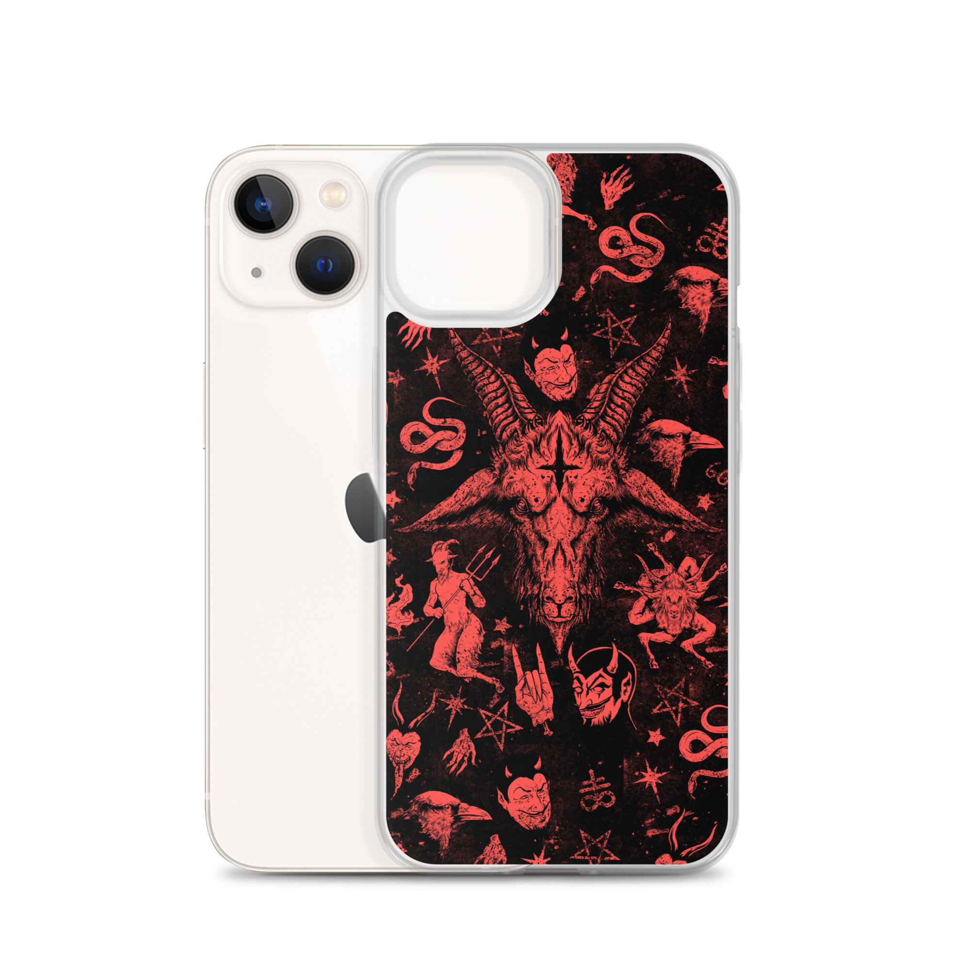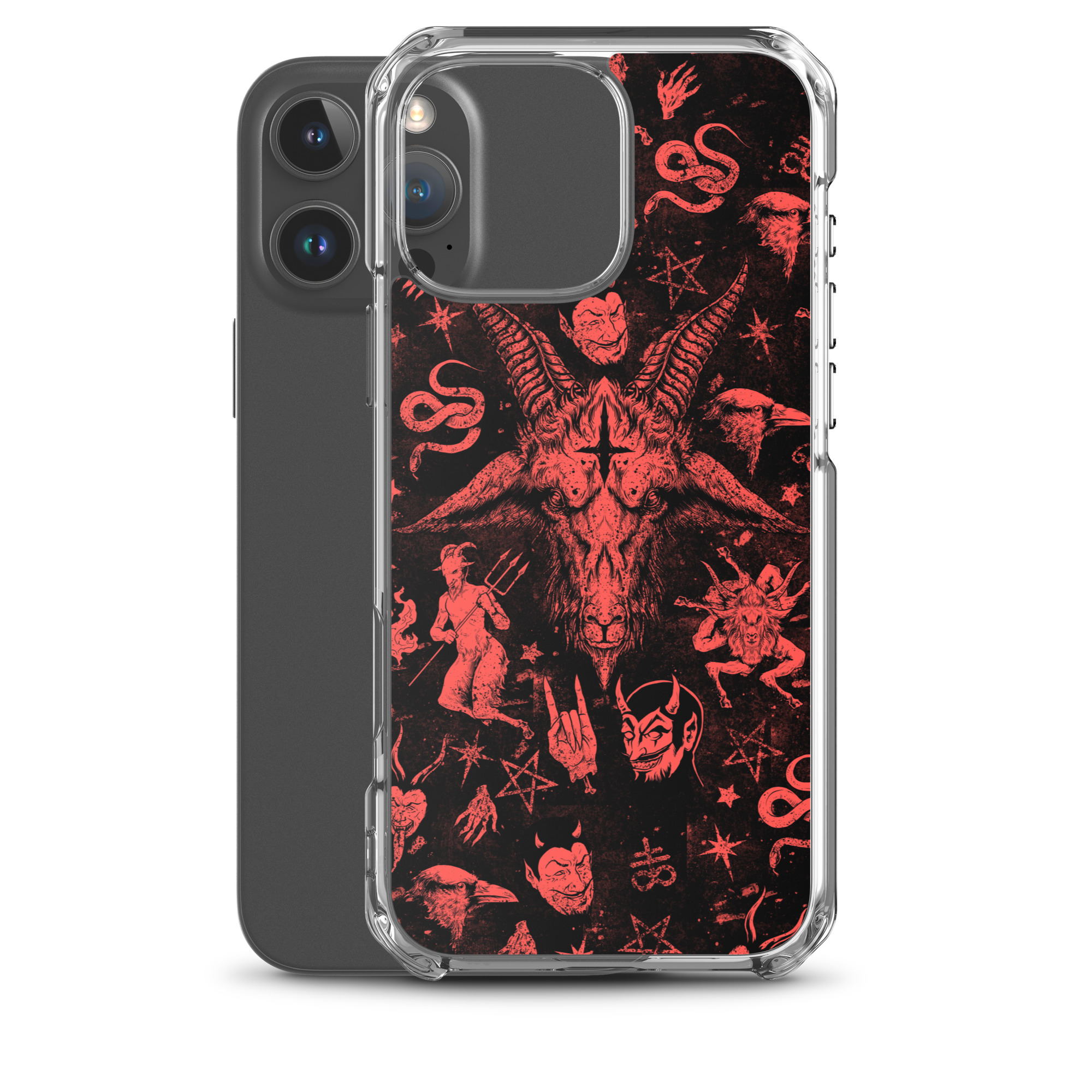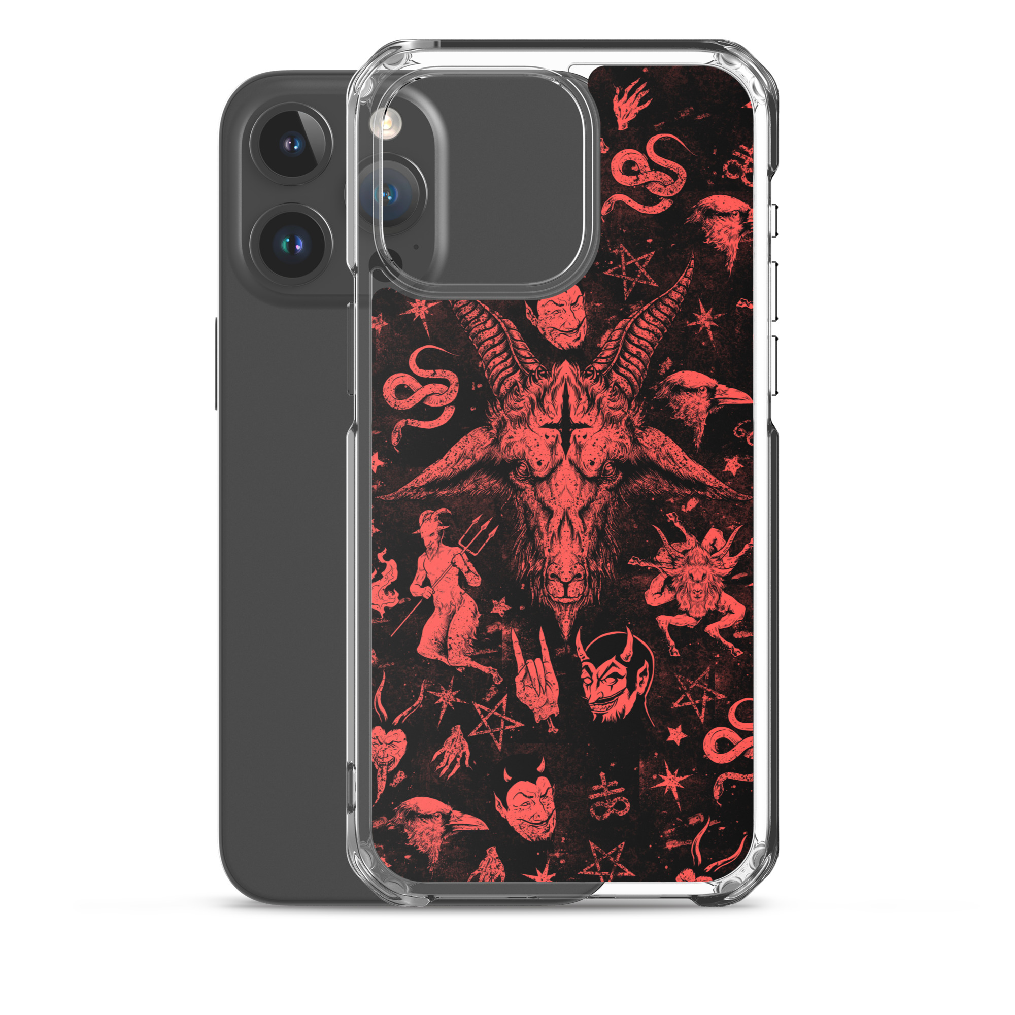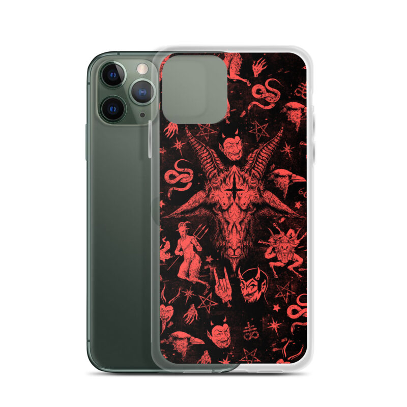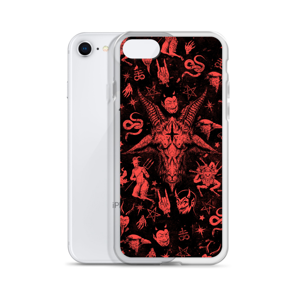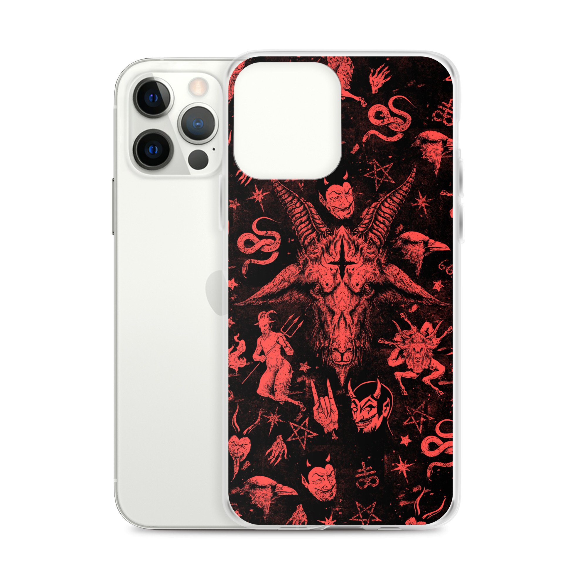 Mobilskal som passar iPhone med ett detaljrikt tryck med mörkröda satanistiska motiv som dekoration. Tillverkad i hög kvalitet och skyddar baksidan och sidorna på din telefon mot repor, smuts, olja och damm. Sidorna är genomskinliga och har färdiga hål för laddning, volym, hörlurar och på/avstängning. Skalet är väldigt slitstarkt och enkelt att ta av telefonen på grund av det följsamma materialet runtom. Kompatibla för trådlös laddning.