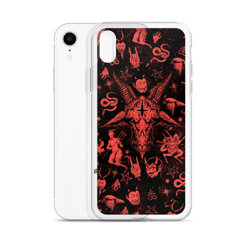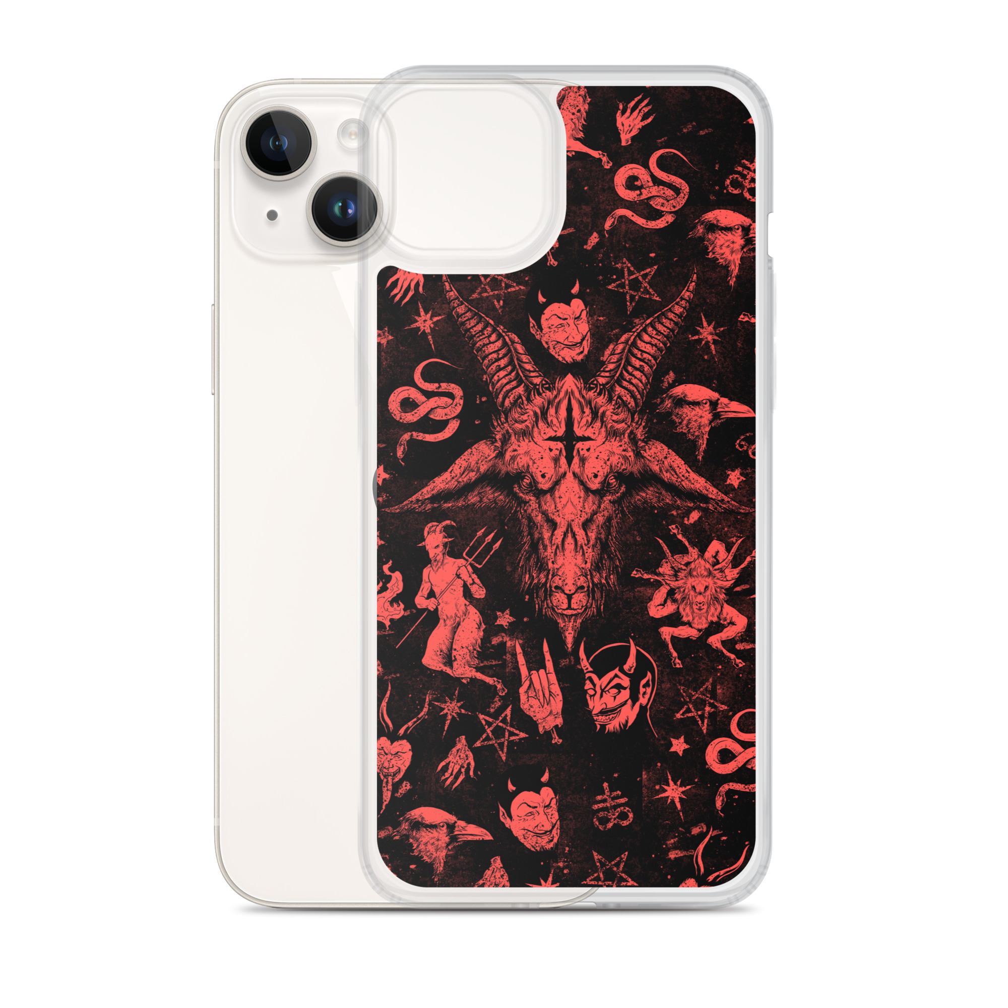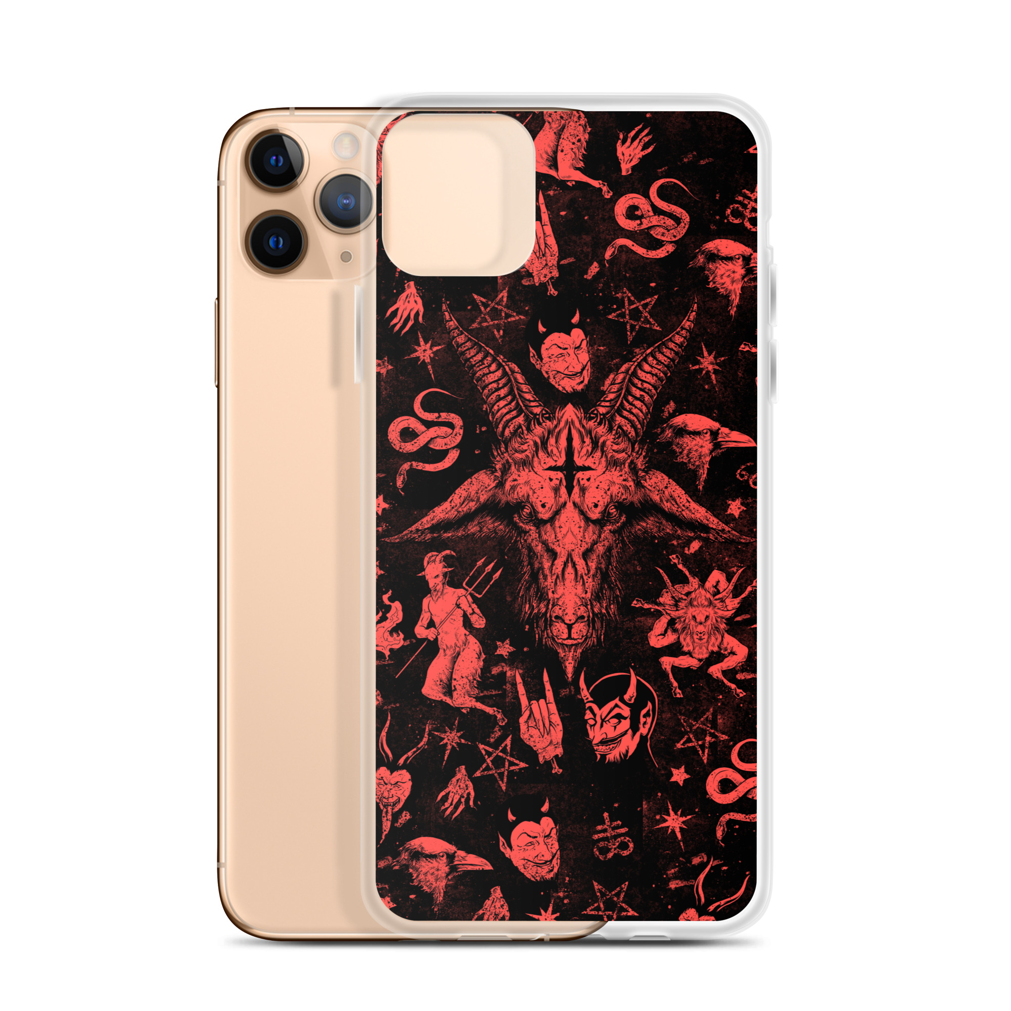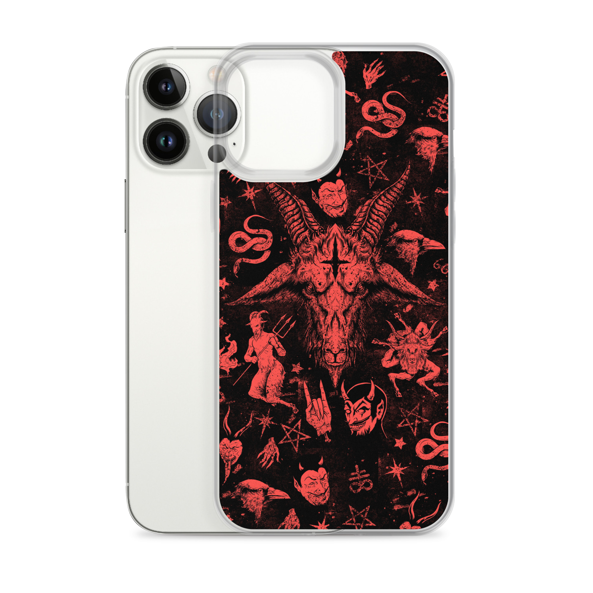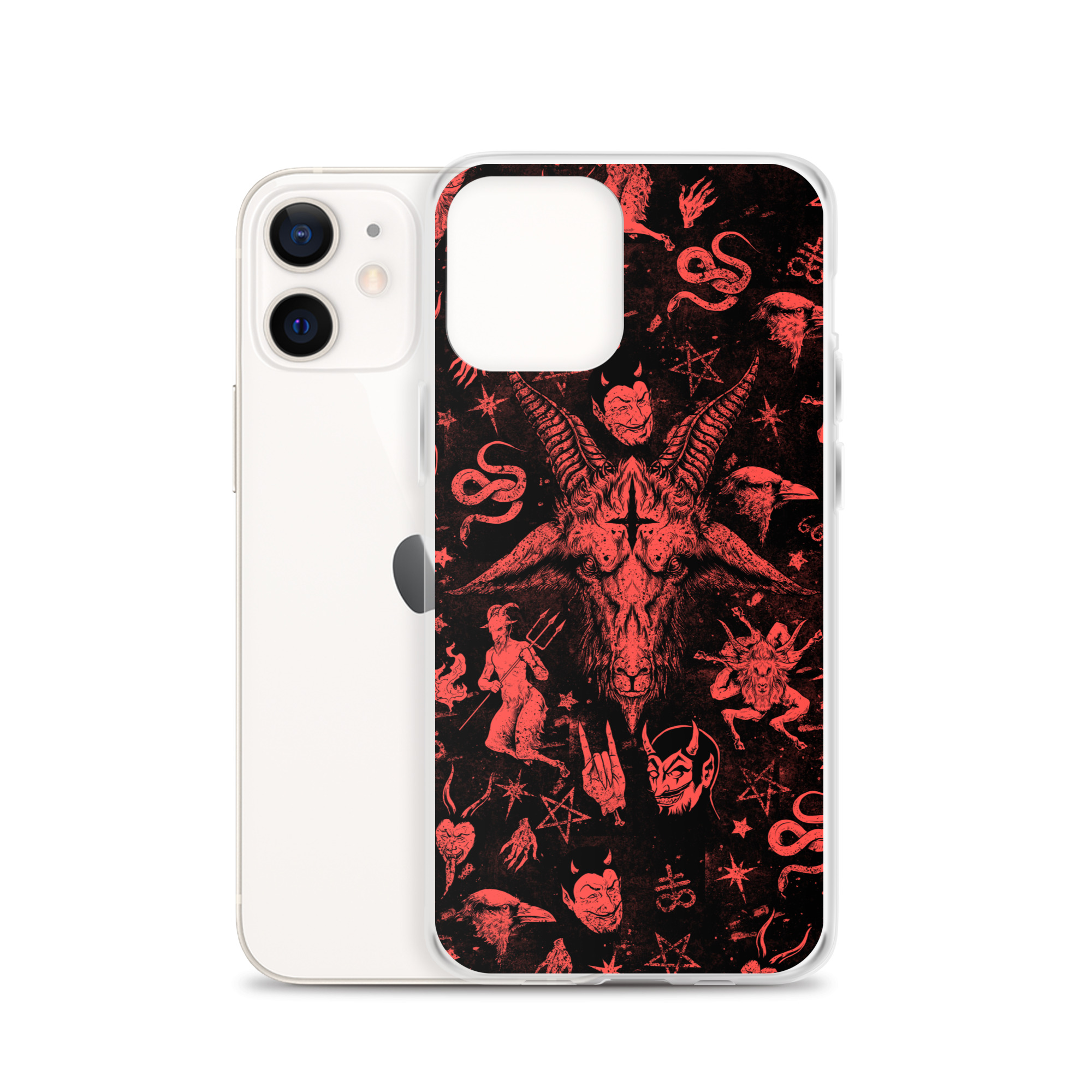 Mobilskal som passar iPhone med ett detaljrikt tryck med mörkröda satanistiska motiv som dekoration. Tillverkad i hög kvalitet och skyddar baksidan och sidorna på din telefon mot repor, smuts, olja och damm. Sidorna är genomskinliga och har färdiga hål för laddning, volym, hörlurar och på/avstängning. Skalet är väldigt slitstarkt och enkelt att ta av telefonen på grund av det följsamma materialet runtom. Kompatibla för trådlös laddning.