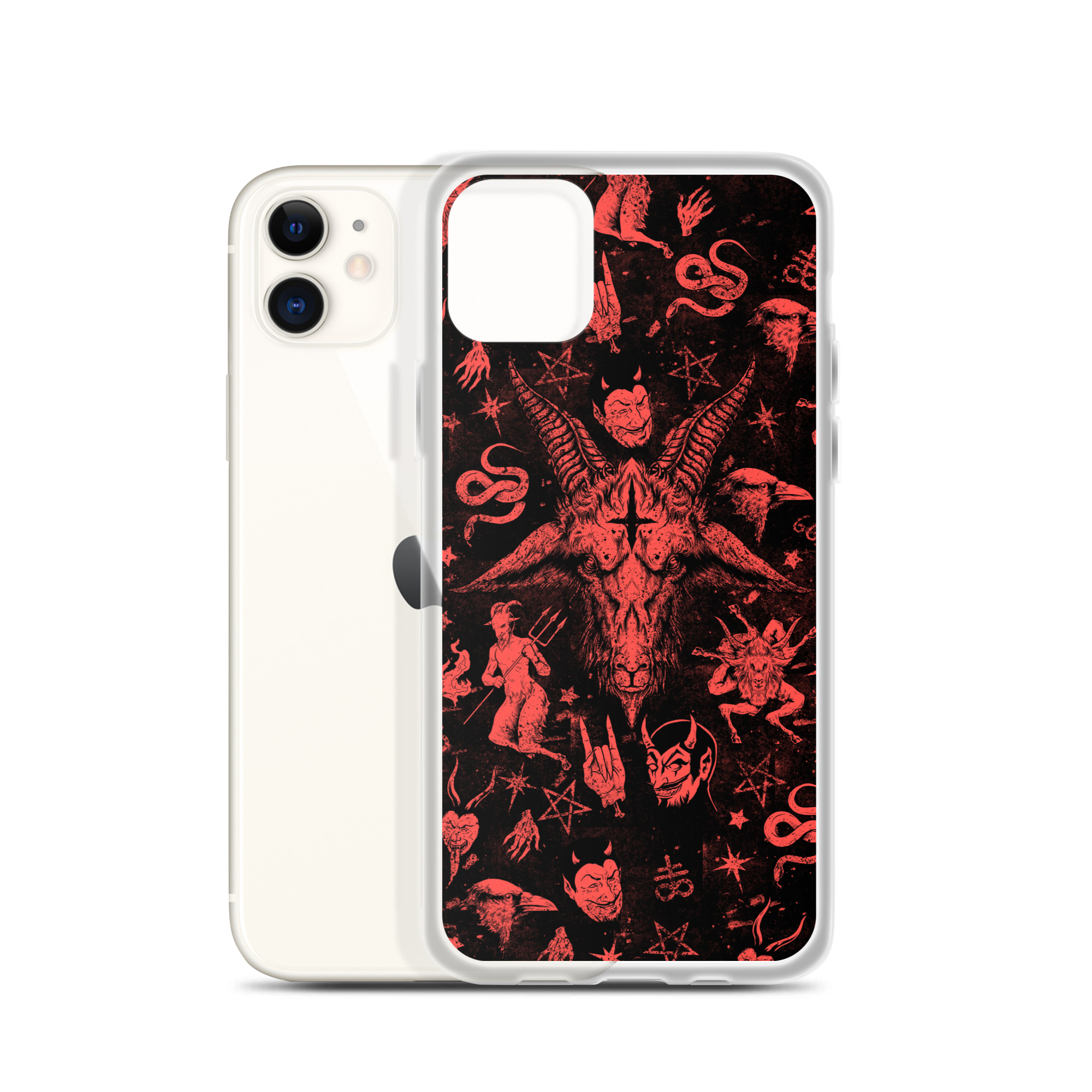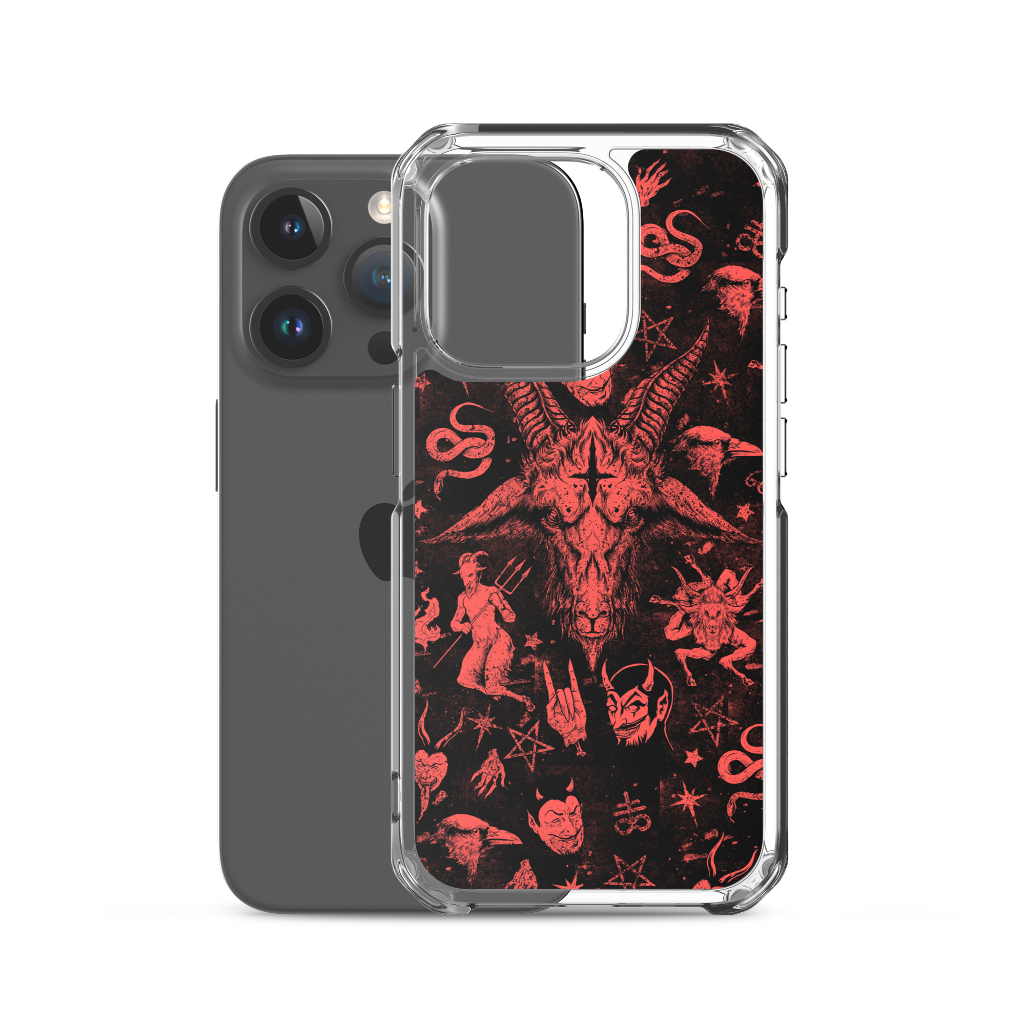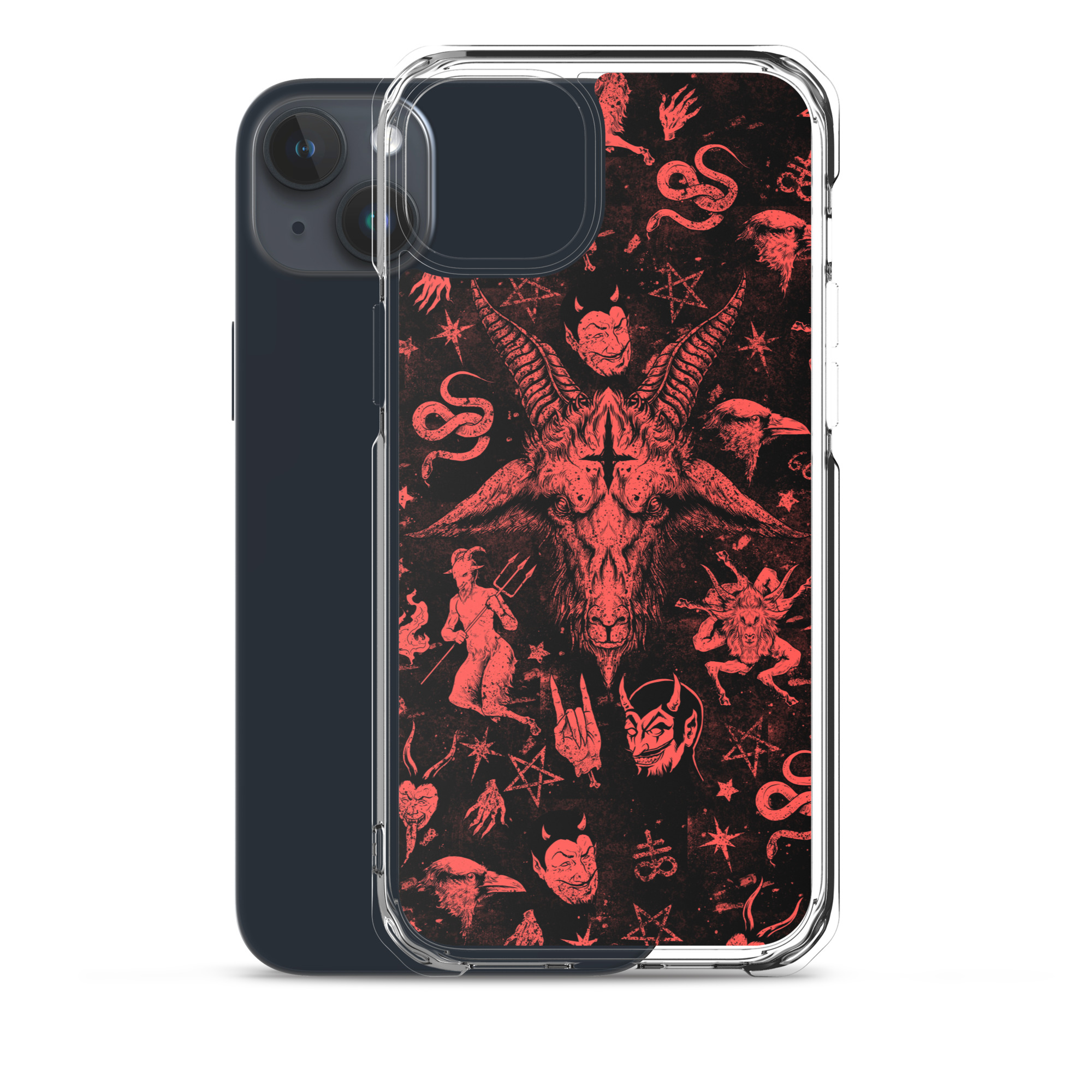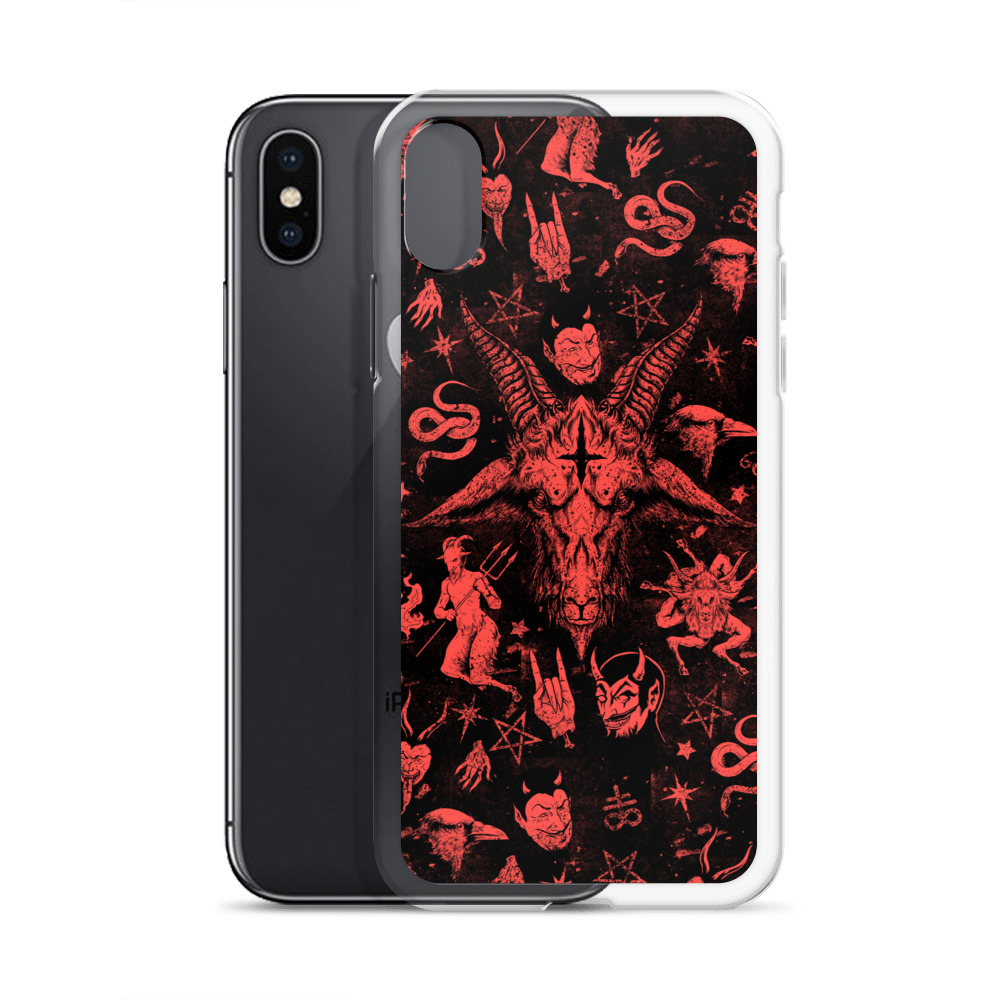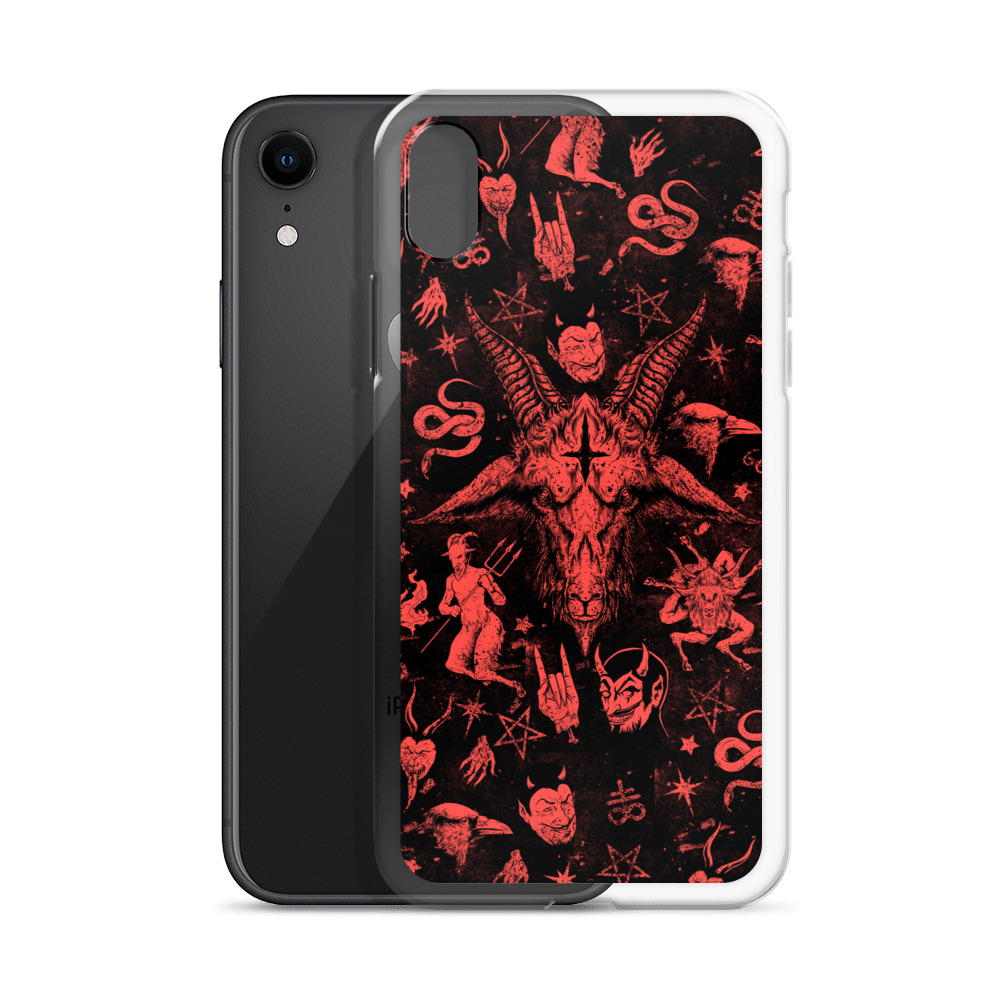 Mobilskal som passar iPhone med ett detaljrikt tryck med mörkröda satanistiska motiv som dekoration. Tillverkad i hög kvalitet och skyddar baksidan och sidorna på din telefon mot repor, smuts, olja och damm. Sidorna är genomskinliga och har färdiga hål för laddning, volym, hörlurar och på/avstängning. Skalet är väldigt slitstarkt och enkelt att ta av telefonen på grund av det följsamma materialet runtom. Kompatibla för trådlös laddning.