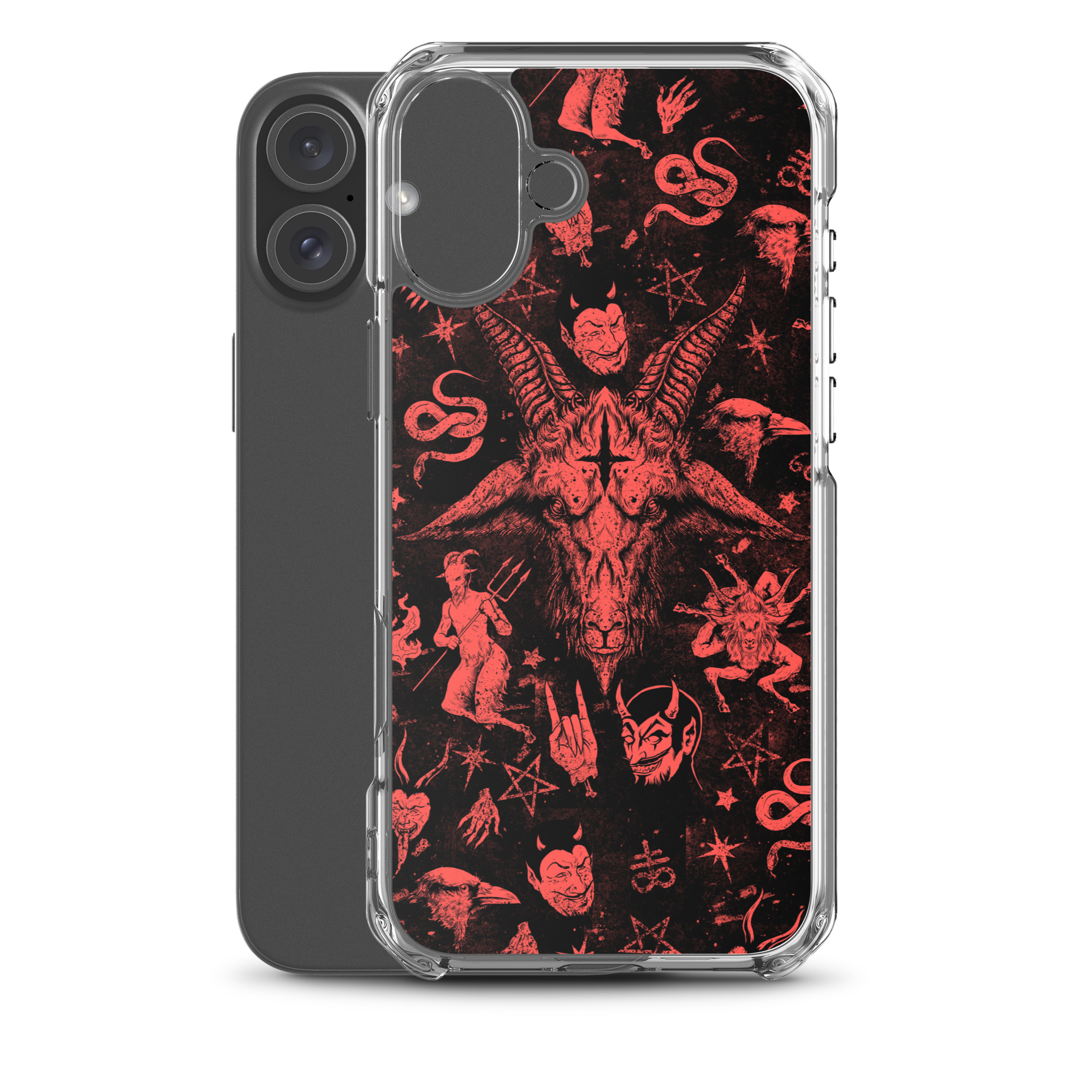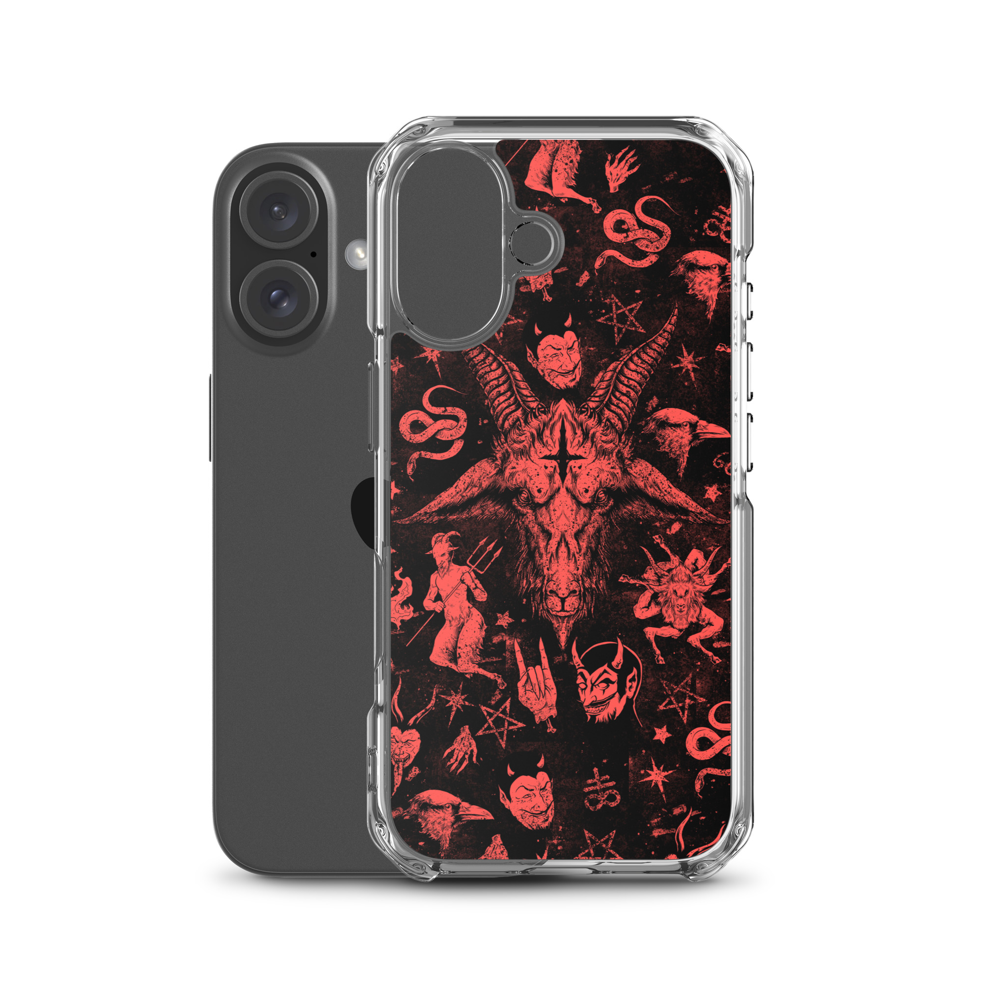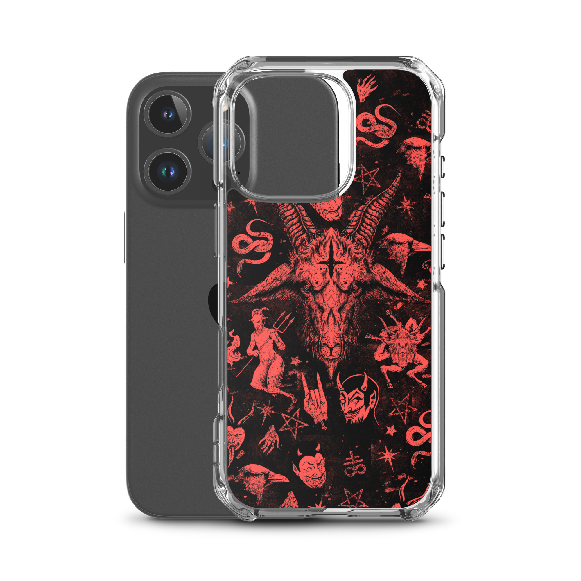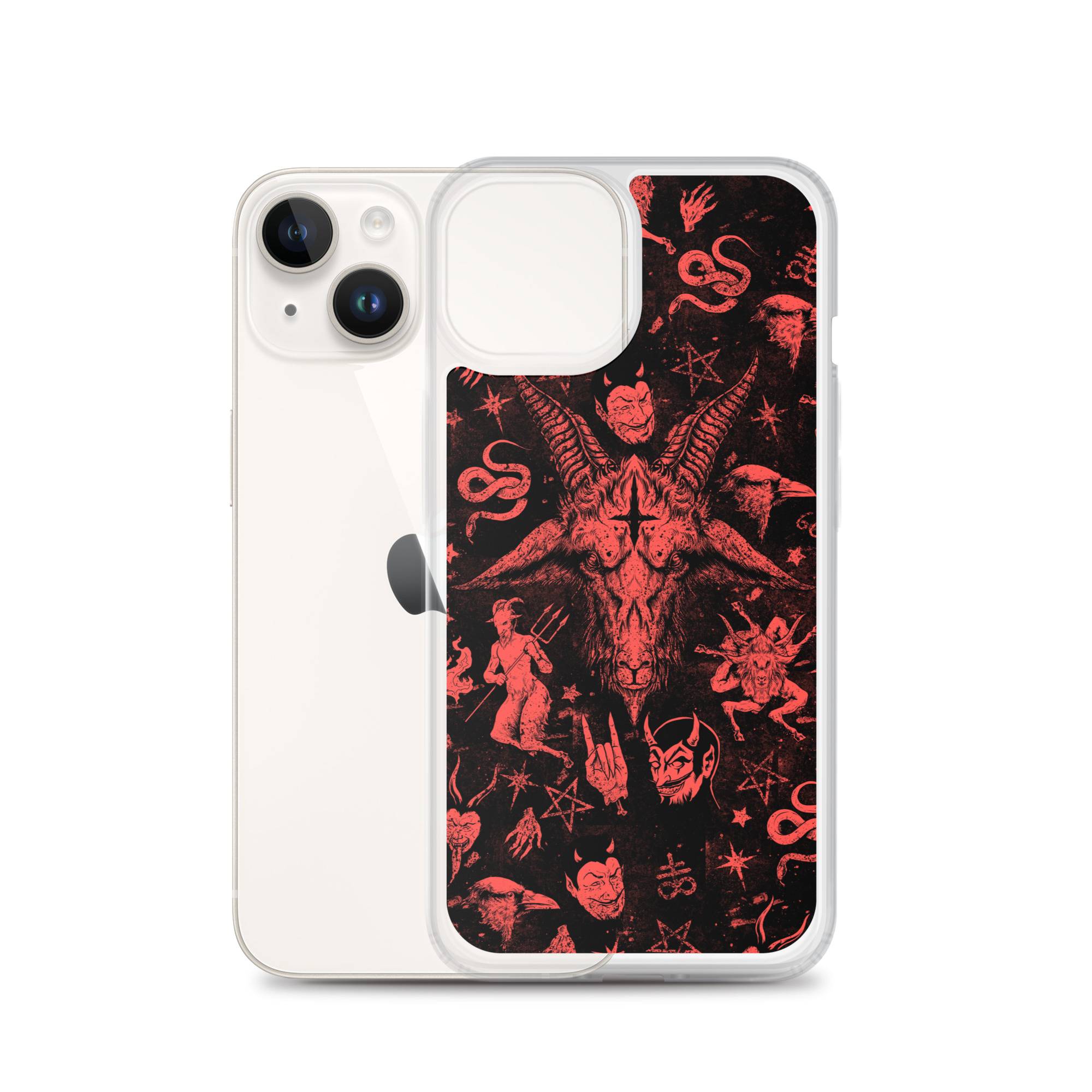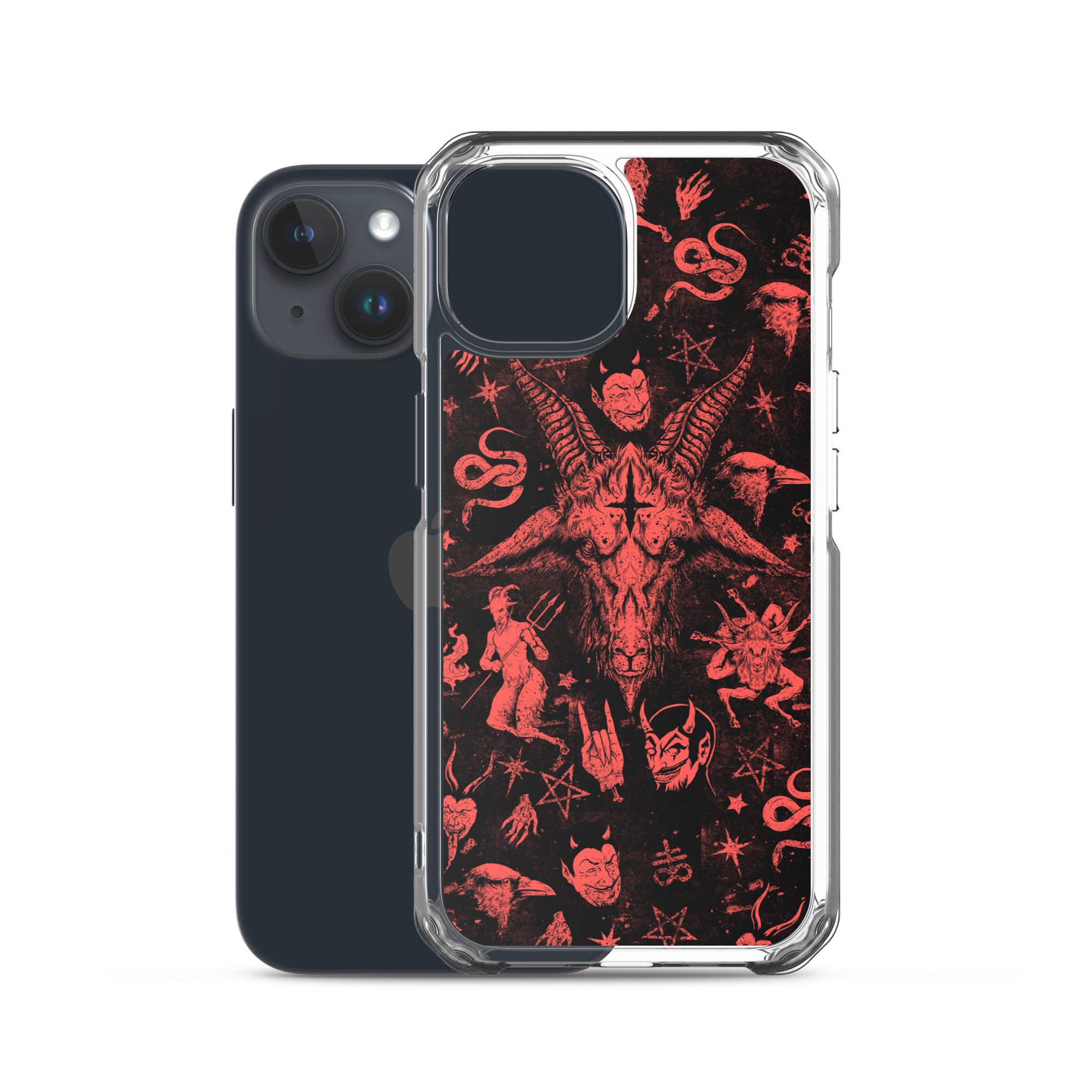Mobilskal som passar iPhone med ett detaljrikt tryck med mörkröda satanistiska motiv som dekoration. Tillverkad i hög kvalitet och skyddar baksidan och sidorna på din telefon mot repor, smuts, olja och damm. Sidorna är genomskinliga och har färdiga hål för laddning, volym, hörlurar och på/avstängning. Skalet är väldigt slitstarkt och enkelt att ta av telefonen på grund av det följsamma materialet runtom. Kompatibla för trådlös laddning.