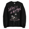 Varm och skön sweatshirt i svart tillverkad i blandad bomull/polyester med en kvinnlig djävul och texten ’Satan is a woman’ som dekoration på framsidan. Tröjan passar perfekt till både män och kvinnor som älskar den alternativa stilen.