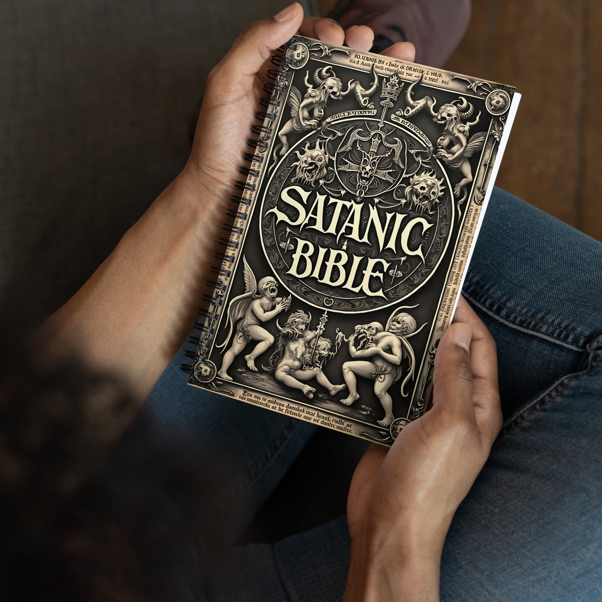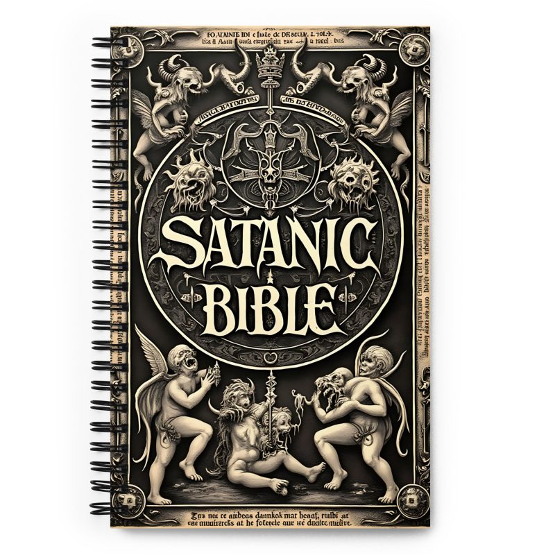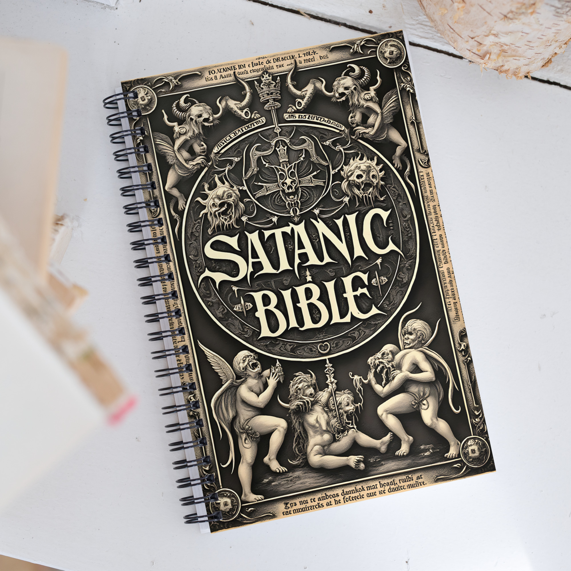 Fantastisk skrivbok med 140 tomma sidor att fylla med dina innersta tankar och onda idéer. På framsidan återfinns ett detaljrikt gotiskt motiv med texten ’Satanic bible’. Tillverkad i kraftigt papper med en höjd på 21 cm.