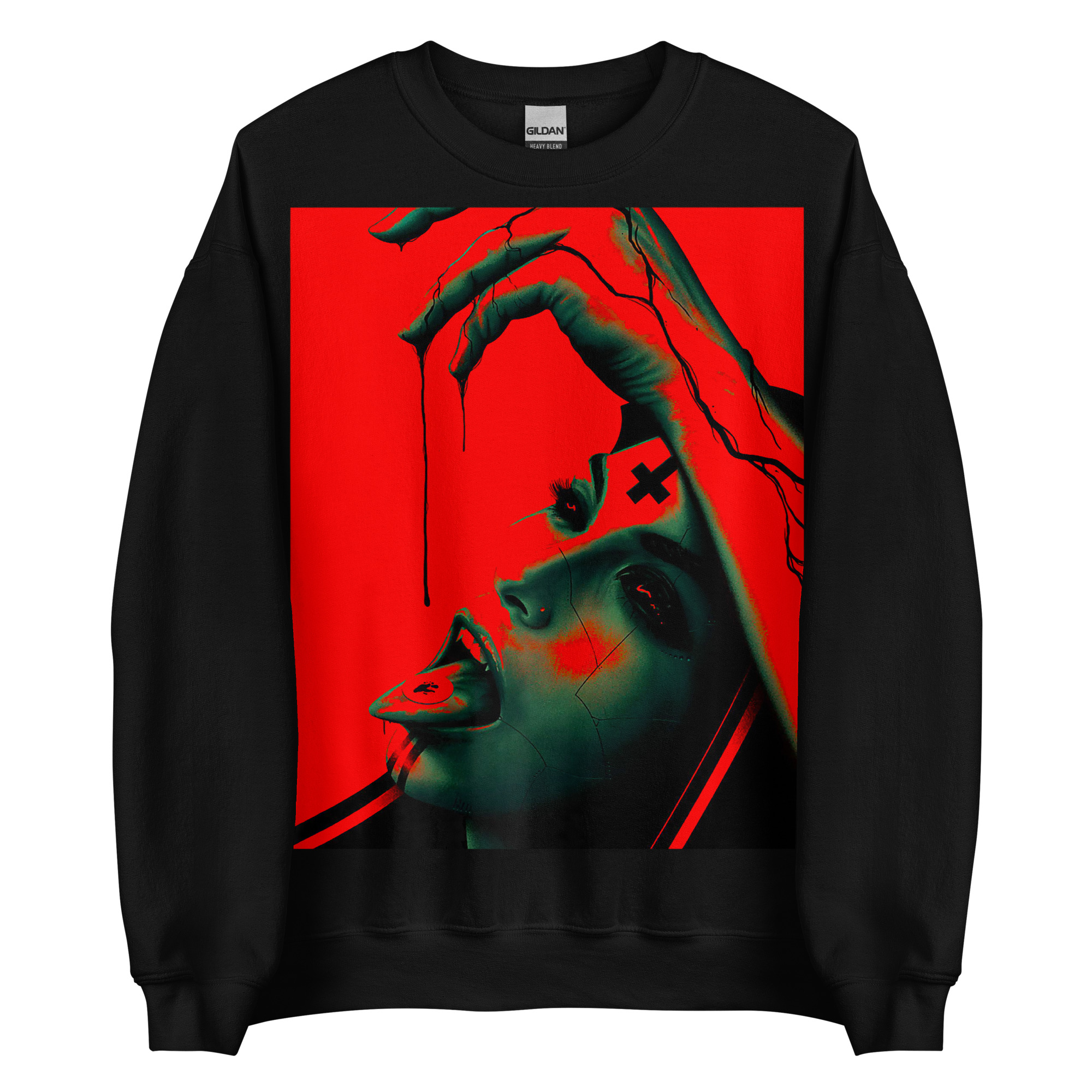 Varm och skön sweatshirt i svart tillverkad i blandad bomull/polyester med en detaljrik satanistisk nunna som dekoration på framsidan. Unisex-modell som passar perfekt till både honom och henne.