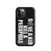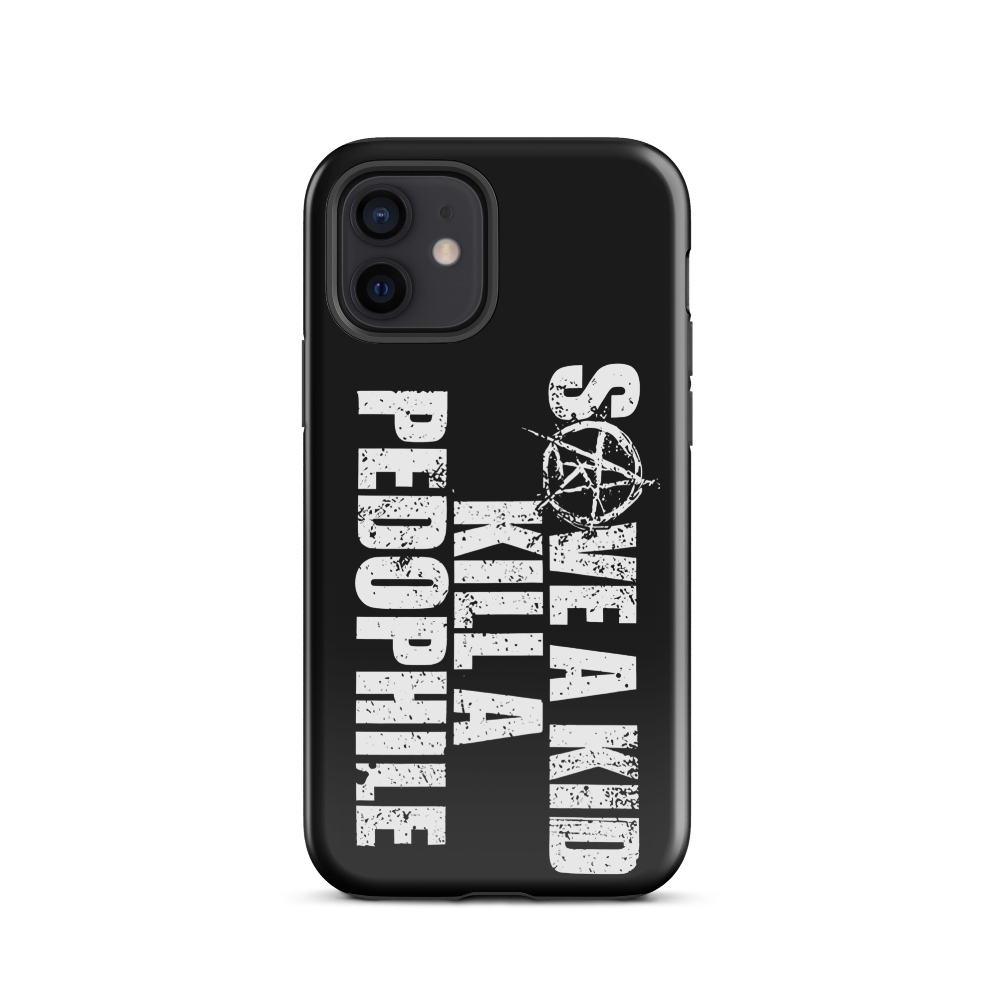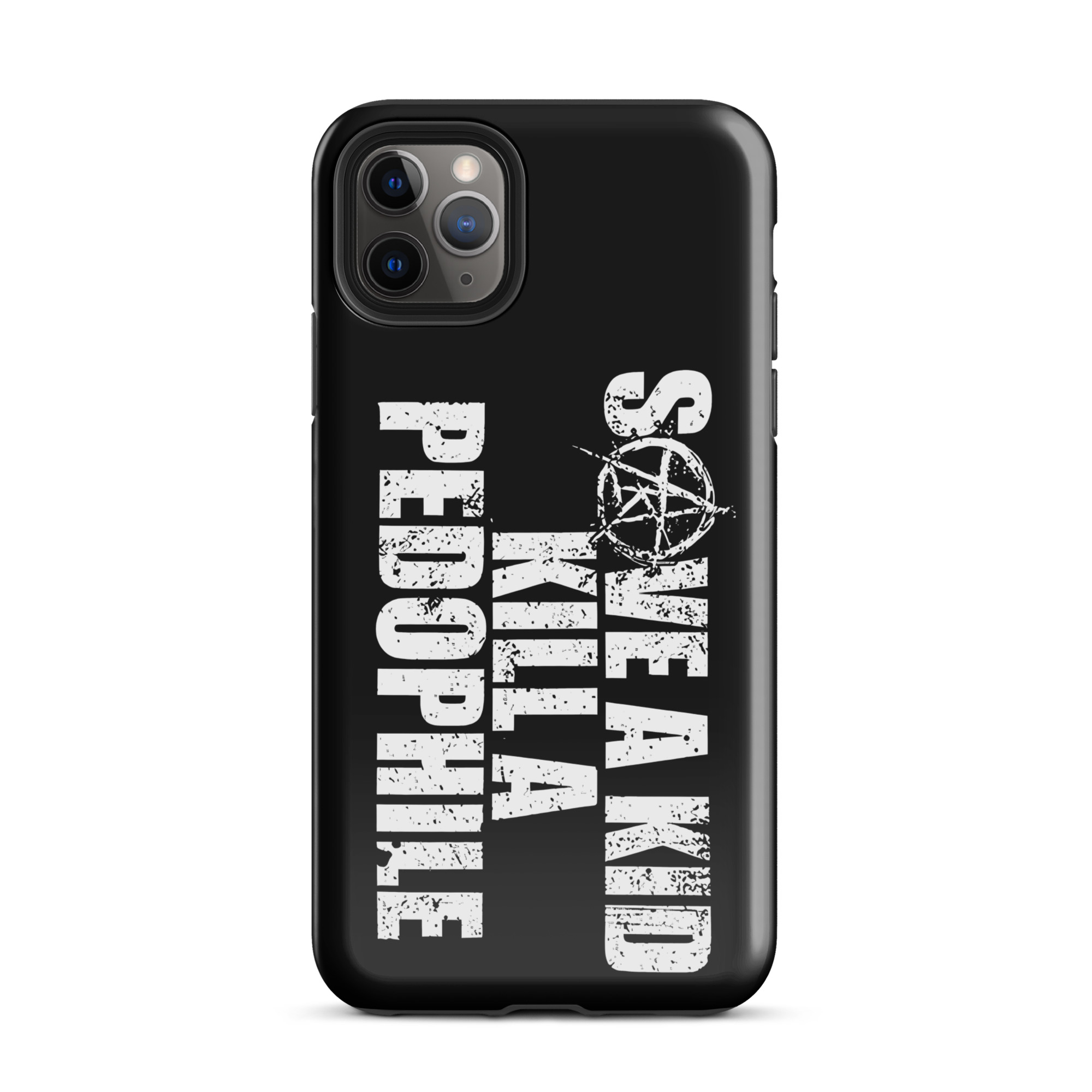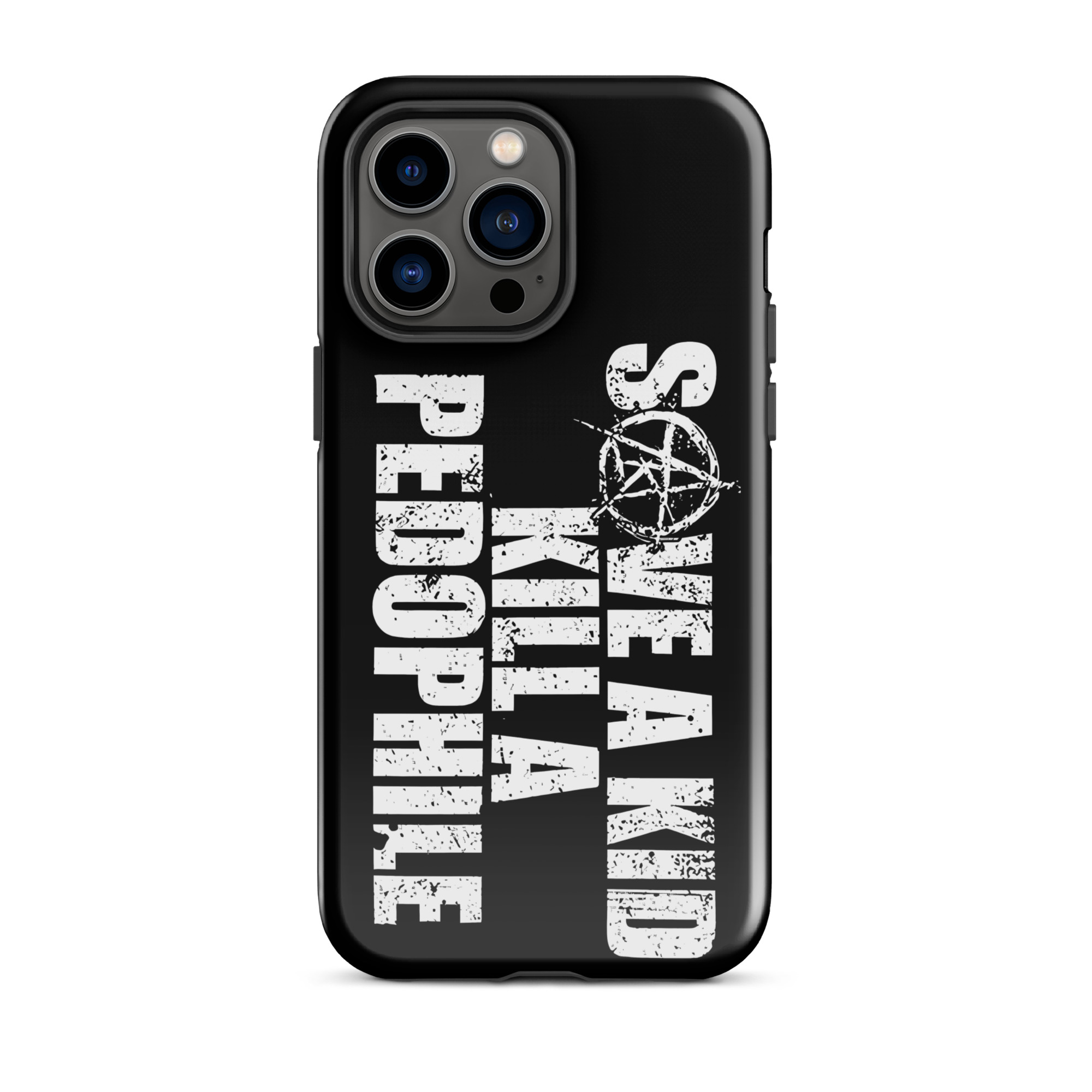 Mobilskal som passar iPhone-modellerna med texten ’Save a kid, kill a pedophile’ som dekoration. Tillverkad i hög kvalitet och skyddar baksidan och sidorna på din telefon mot repor, smuts, olja och damm. Skalet är väldigt slitstarkt på grund av dubbla lager material.