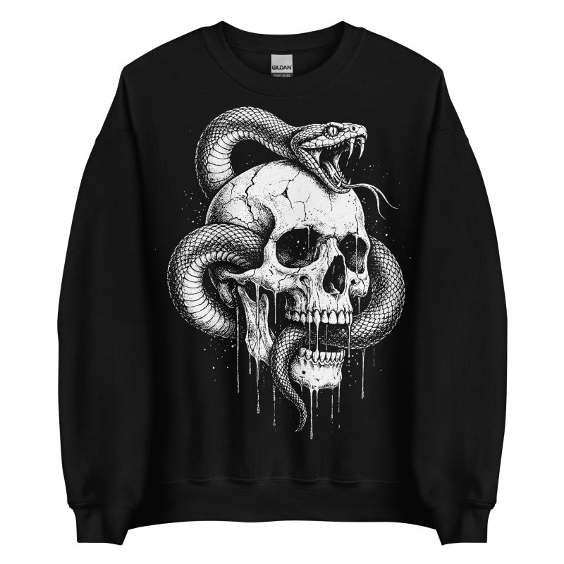 Sweatshirt tillverkad i blandad bomull/polyester med ett stort detaljerat alternativt motiv med en dödskalle och en orm som tryck på framsidan. Unisex-modell som passar perfekt till både honom och henne.