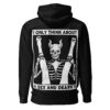Hoodie i unisex-modell tillverkad i en extra fin kvalitet i blandad bomull och polyester. På baksidan återfinns djävulen som håller i två ben och texten ’I only think about sex and death’ som dekoration. Hoodien håller värmen riktigt bra och har ett otroligt mjukt tyg.