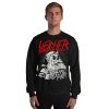 Varm och skön jultröja i svart tillverkad i blandad bomull/polyester med ett stort alternativt julmotiv med en ond jultomte och texten ’Sleigher’ som dekoration på framsidan. Tröjan passar perfekt till både män och kvinnor som älskar udda jultröjor.