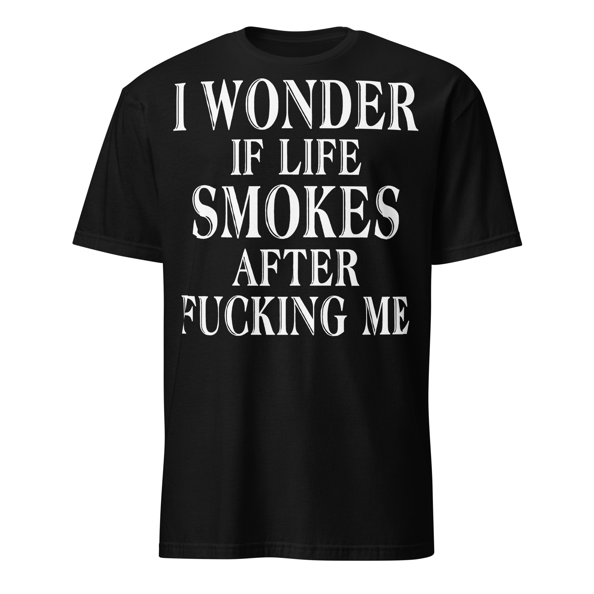 T-shirt i svart med texten ’I wonder if like smokes after fucking me’ som dekoration på framsidan. Passar perfekt till kvinnor och män som älskar alternativa kläder. Tröjan är tillverkad i en supermjuk kvalitet i 100% bomull.