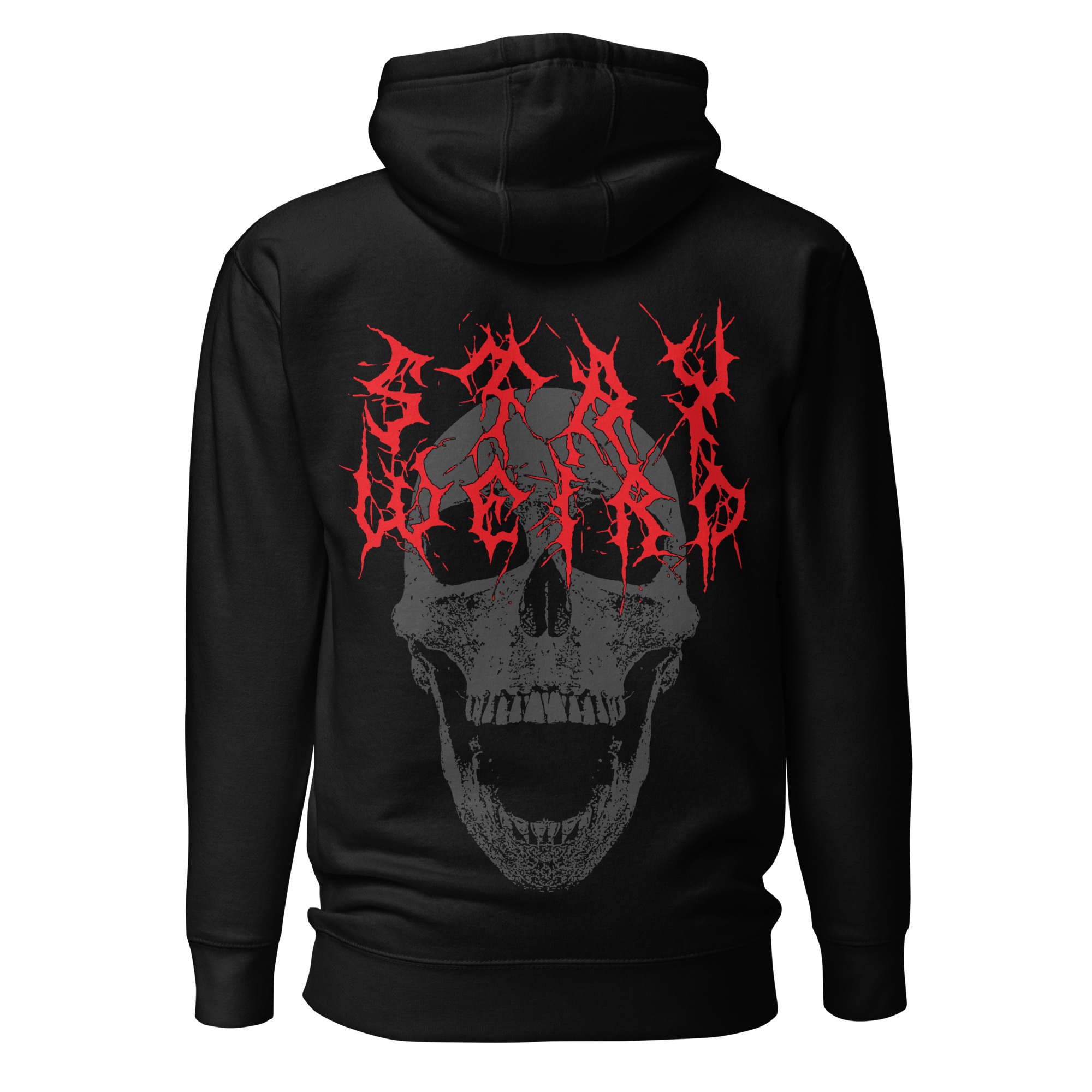 Hoodie i unisex-modell tillverkad i en extra fin kvalitet i blandad bomull och polyester. På baksidan återfinns en stor dödskalle och texten ’Stay weird’ som dekoration. Hoodien håller värmen riktigt bra och har ett otroligt mjukt tyg. Passar alla oss som älskar den alternativa stilen.