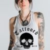 Snyggt linne i racerback-modell med en stor dödskalle och texten ’Tattooed low life’ som dekoration på framsidan. Linnet är tillverkat i jersey i lättvikt för att följa kroppen perfekt. Materialet är mycket stretchigt och kommer bli din nya favorit.