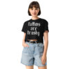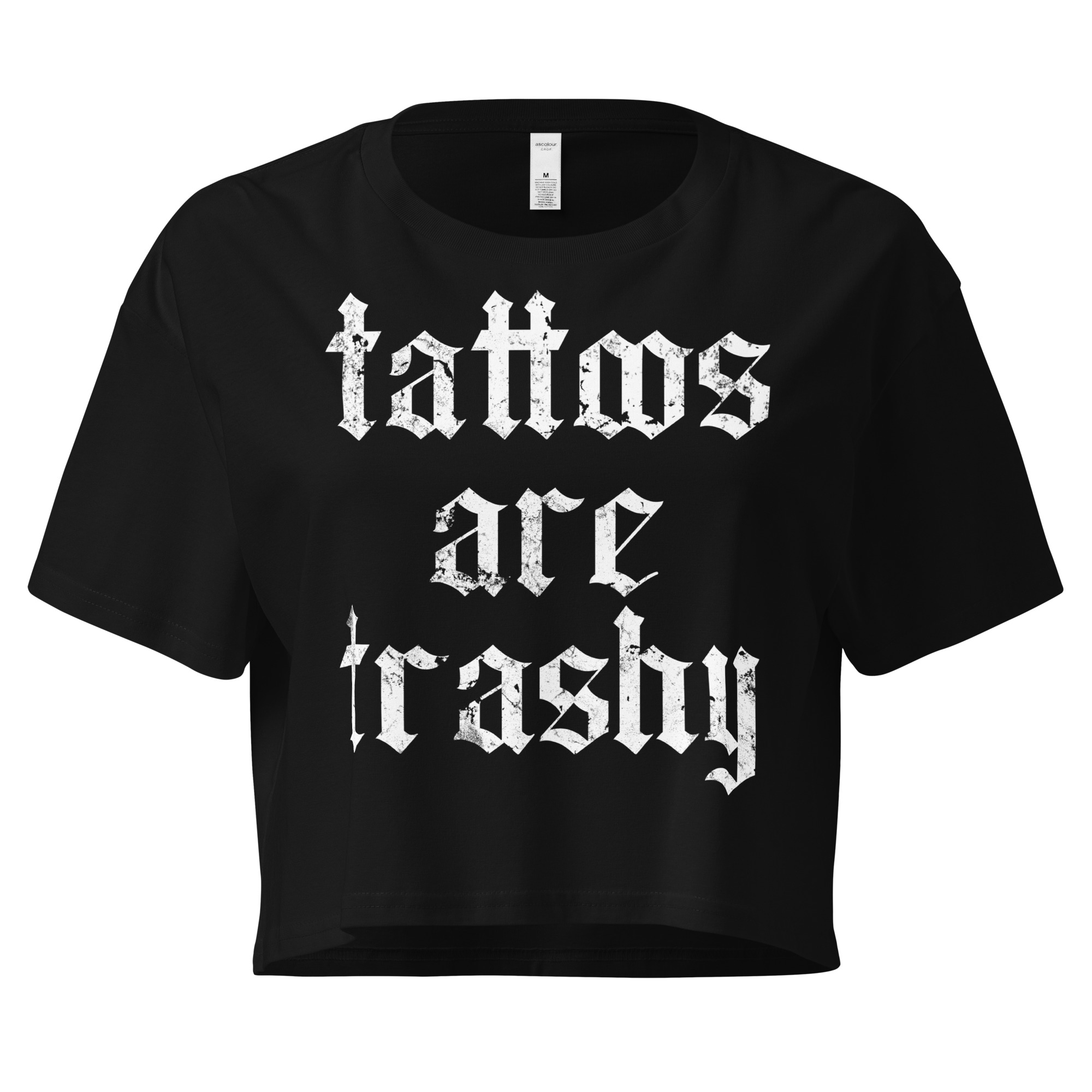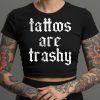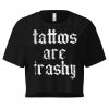 Snygg crop top dekorerad med texten ’Tattoos are trashy’ på framsidan. Tillverkad i kammad bomull i en fin kvalitet. Passar alla kvinnor som tycker att tatueringar är trashigt.