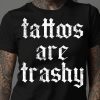 Semi-fitted t-shirt i svart med texten ’Tattoos are trashy’ som dekoration på framsidan. Passar perfekt till kvinnor som tycker att tatueringar är trashigt. Tröjan är tillverkad i en fin kvalitet i 100% bomull.