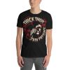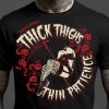 T-shirt i svart med ett stort alternativt tryck med texten ’Thick thighs, thin patience’ som dekoration på framsidan. Passar perfekt till kvinnor och män som älskar alternativa kläder. Tröjan är tillverkad i en supermjuk kvalitet i 100% bomull.