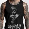 Linne i svart med en annorlunda nunna och texten ’Unholy’ som motiv på framsidan. Tillverkad i en skön kvalitet i 100% bomull. Passar alla som älskar den alternativa stilen.