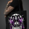 Snygg väska med djävulens nunna och texten ’Unholy’ som tryck på båda sidorna. Väskan är tillverkad i en fin kvalitet i 100% polyester med en storlek på 38,1×38,1 cm. Väskan trycks och sys sedan ihop för hand exklusivt efter din beställning och skickas till dig direkt från leverantören.