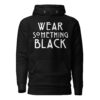 Svart hoodie i unisex-modell tillverkad i en extra fin kvalitet i blandad bomull och polyester. Framsidan är dekorerad med texten ’Wear something black’. Hoodien håller värmen riktigt bra och har ett otroligt mjukt tyg.