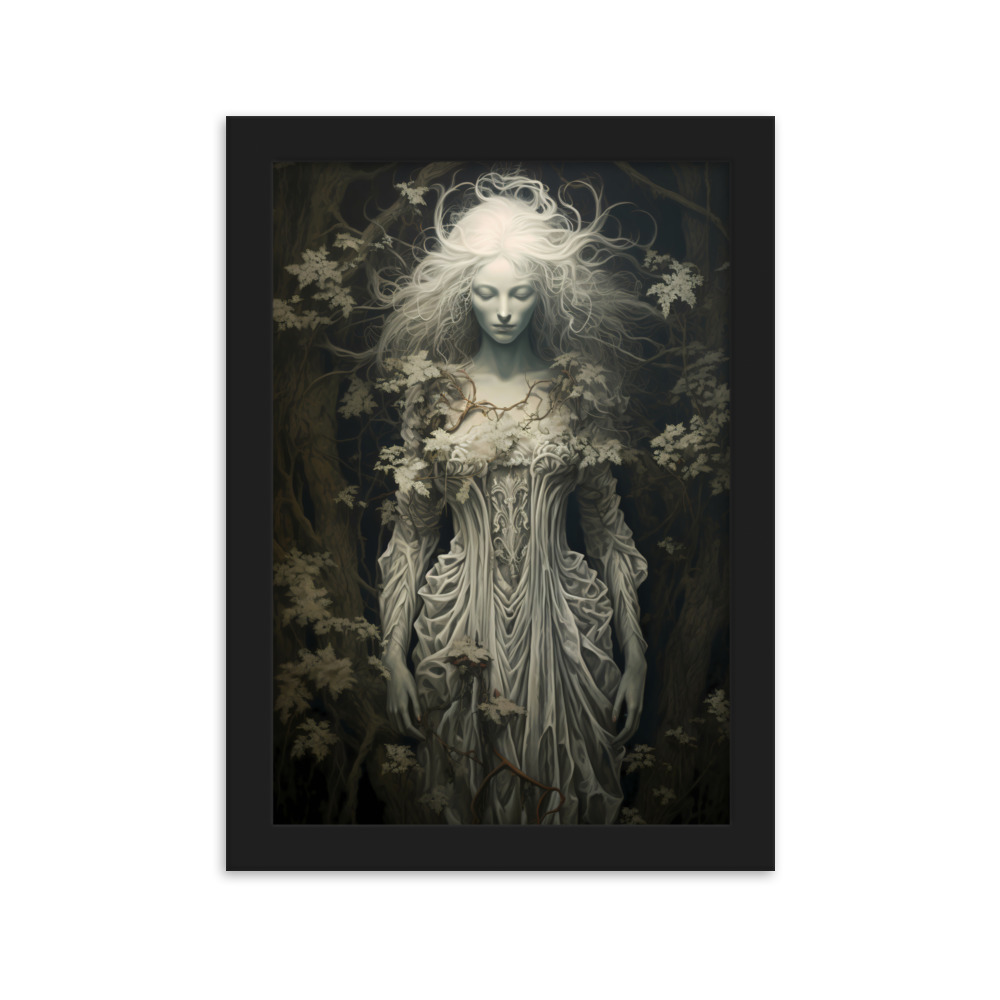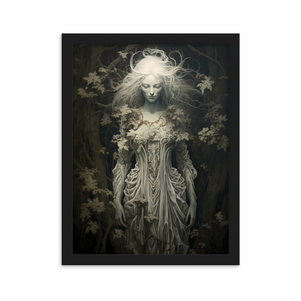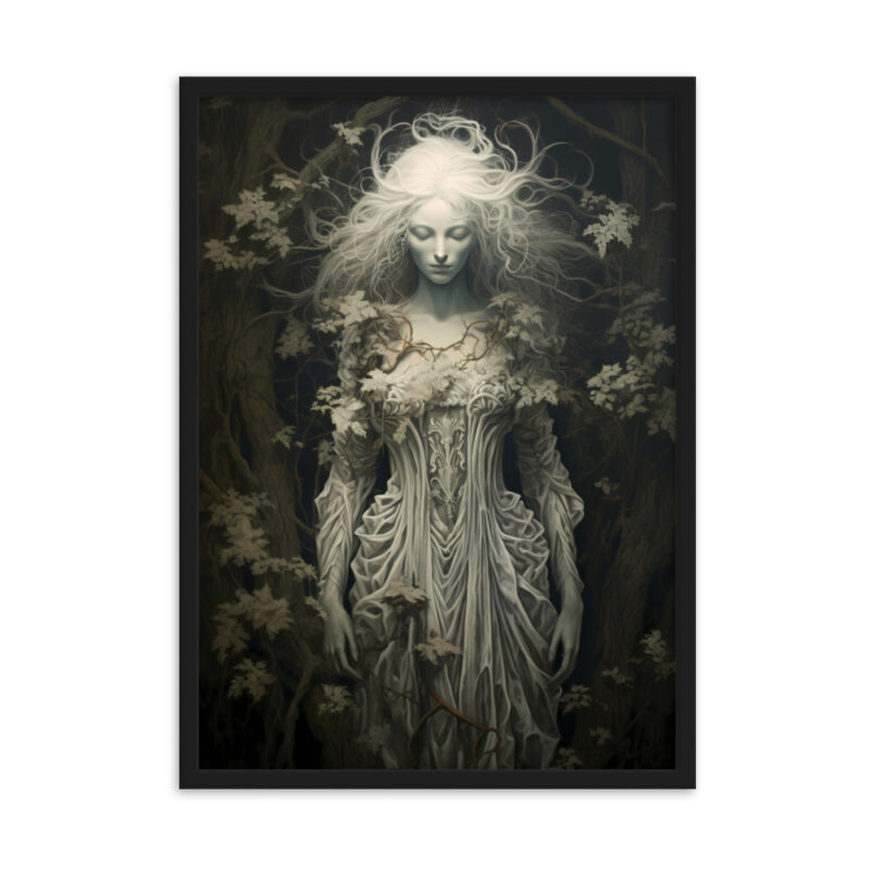 Tavla dekorerad med en mystisk vit kvinna. Tavlan finns i tre olika storlekar och kommer garanterat sticka ut i ditt hem. Passar alla oss som vill lägga till en mörk twist i våra hem. Tillverkas exklusivt för dig efter din beställning och skickas direkt från leverantören. Inklusive upphängningsanordningar.