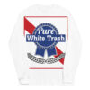 Långärmad tröja i vitt i en tunnare skön kvalitet med texten ’Pure white trash’ som tryck på framsidan. Tillverkad i 100% bomull och passar strålande till både manliga och kvinnliga white trash.