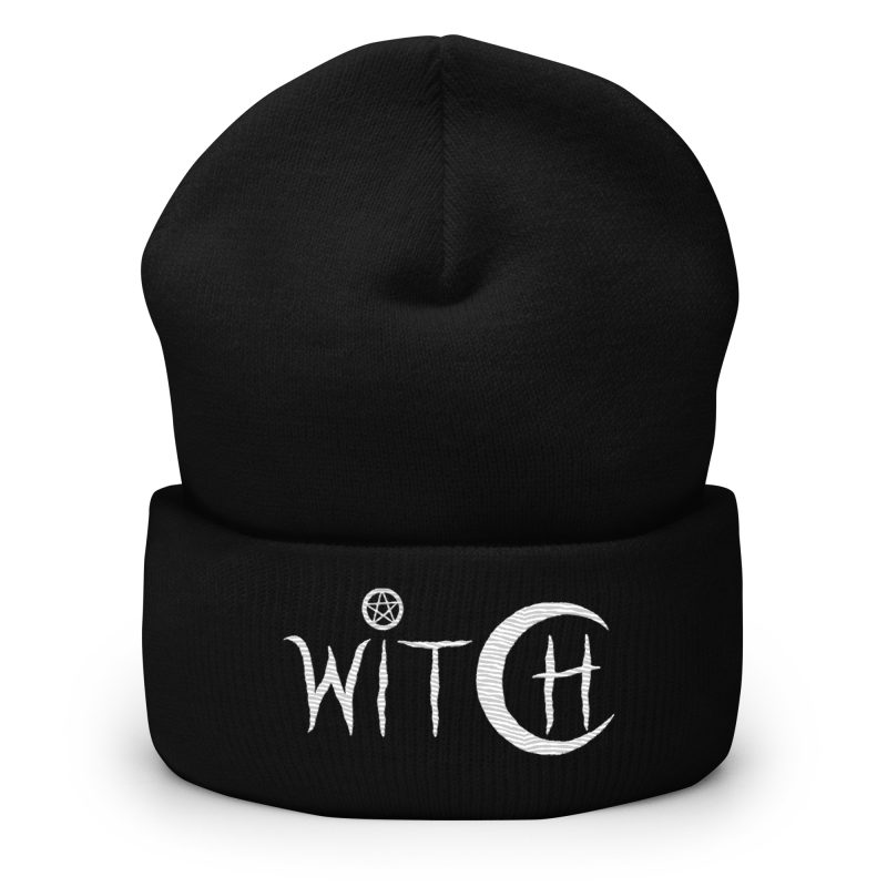 Mössa i svart med ett pentagram, en måne och texten ’Witch’ broderat på framsidan. Tillverkad i ett stretchigt och allergivänligt material i turbo-akryl. Längden är 30 cm och den passar strålande till alla moderna häxor.