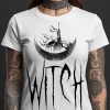 Semi-fitted t-shirt i vitt med en kyrka, en måne och texten ’Witch’ som dekoration på framsidan. Passar perfekt till kvinnor som älskar den alternativa stilen. Tröjan är tillverkad i en fin kvalitet i 100% bomull.
