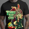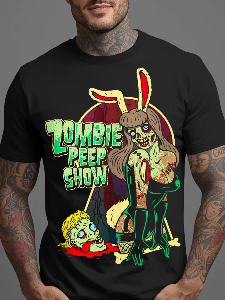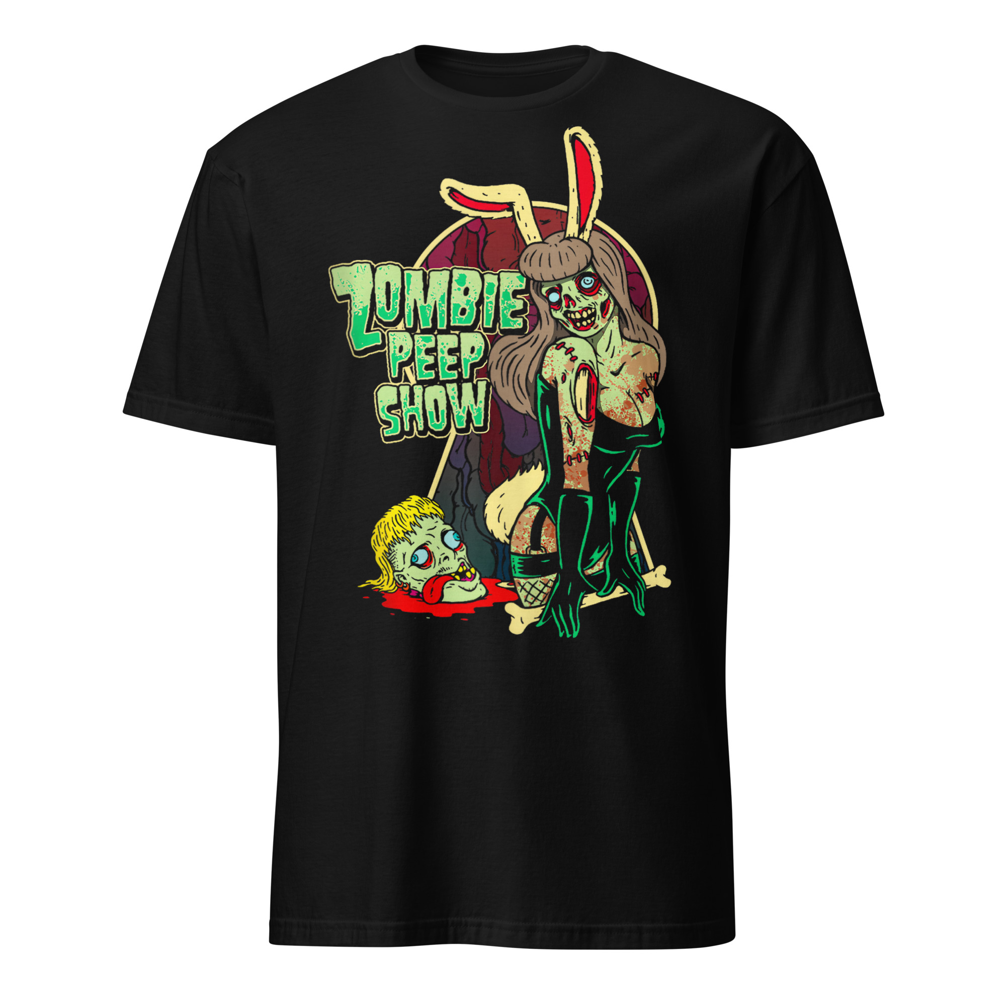 T-shirt i svart med en zombie-pinuppa och texten ’Zombie peep show’ som dekoration på framsidan. Passar perfekt till både män och kvinnor som älskar alternativa kläder. Tröjan är tillverkad i en fin kvalitet i 100% bomull.